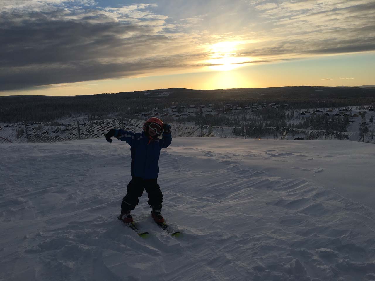 Vel nede i dalen tog vi gondolen op igen, og mere skiløb på bjergets top ventede – mindstemanden på 7 og jeg kørte lidt sammen i solskinnet mens de store drenge tog nogle af de røde pister – og ved 17-tiden stoppede skiløbet for os – selvom pisterne i Branäs er åbne helt til kl. 19 hver dag!
