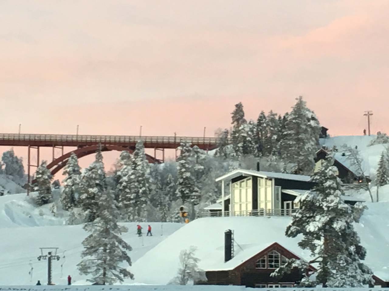 Efter nogle ture i det blå område på østsiden af toppen af bjerget (Sjöområdet), skulle drengene i skiskole for anden dag, og da de var kommet vel afsted på hhv. niveau 1 og 2, kunne vi voksne lige tage nogle ture for os selv. Lars, som er en noget mere erfaren og habil skiløber end mig, tog et par ture på de røde og den sorte piste, mens jeg tog lidt flere ture på de blå – og så mødtes vi ved stoleliften og tog sammen tilbage og fandt drengene, da deres skiskole stoppede ved middagstid.